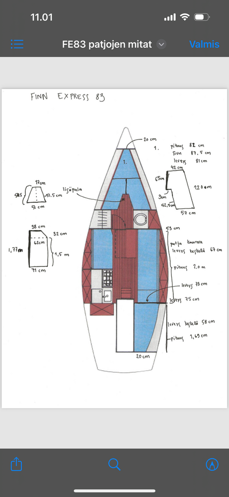 Patjat on hyväkuntoisia ja nostettu aina veneestä pois talveksi. Näillä nukkuu paremmin kuin kotona!