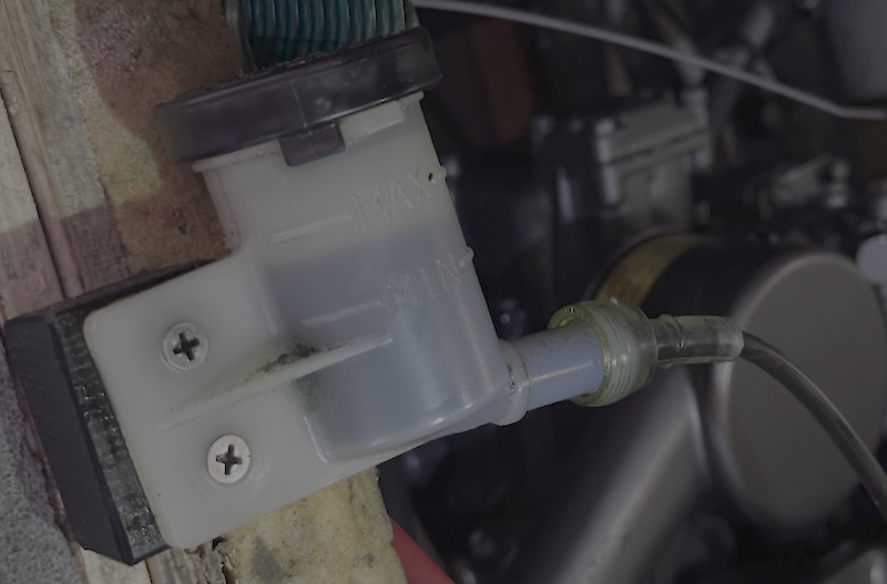 Epäilen että tämä öljysäiliö on joku viritys joka on ottanut tulta allensa ja kaikissa vanhoissa veneissä on joku jarrunestesäiliön kaltainen viritys jota ei oikeasti pitäisi tarvita.